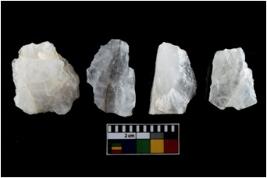 | Description / विवरण | There are n-4 of intact utilized flakes made up of Quartz. Some of them have bulge of percussion and some are flat flakes. |