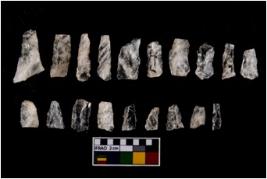 | Description / विवरण | There 20 no. of blades of material quartz. Some of them are points. All the blades are retouched and having sharp edges. |