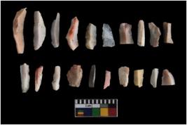 | Description / विवरण | The total number of specimens are n 20 quartz. T The blades have a flat dorsal surface, and double rigdes going parallel to its length. Some of the microliths have steep retouch at their tip. |
