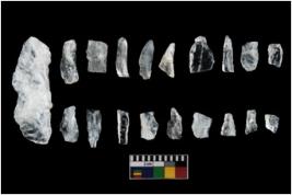 | Description / विवरण | The total number of specimens are n 20 quartz. T The blades have a flat dorsal surface, and double rigdes going parallel to its length. Some of the microliths have steep retouch at their tip. |