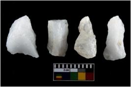 | Description / विवरण | There are n-4 of intact utilized flakes made up of Quartz. Some of them have bulge of percussion and some are flat flakes. |