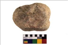 | Description / विवरण | A partially broken specimen of irregularly round shaped hammerstone. It is tablet shaped with battered periphery along with the circumference. It is somewhat flat. It is made up of quartz. |