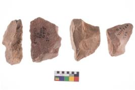 | Description / विवरण | Four worked utilised flakes. Many a times tapering and pointed at one end. |