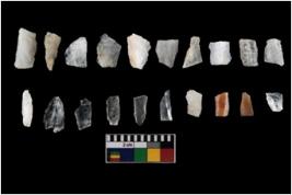 | Description / विवरण | The total number of specimens are n 20 quartz. T The blades have a flat dorsal surface, and double rigdes going parallel to its length. Some of the microliths have steep retouch at their tip. |