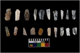 | Description / विवरण | The total number of specimens are n 20 quartz. T The blades have a flat dorsal surface, and double rigdes going parallel to its length. Some of the microliths have steep retouch at their tip. |
