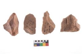| Description / विवरण | Four worked utilised flakes. Many a times tapering and pointed at one end. |