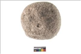 | Description / विवरण | A partially broken specimen of roughly round shaped hammerstone with battered periphery along with the circumference. It is broken from one end. It is made up of sandstone. It is having rough surface. |
