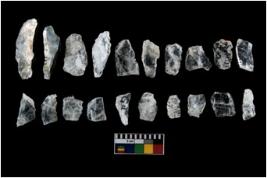 | Description / विवरण | The total number of specimens are n 20 quartz. T The blades have a flat dorsal surface, and double rigdes going parallel to its length. Some of the microliths have steep retouch at their tip. |