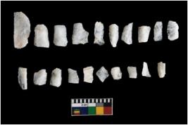 | Description / विवरण | The total number of specimens are n 20 quartz. T The blades have a flat dorsal surface, and double rigdes going parallel to its length. Some of the microliths have steep retouch at their tip. |