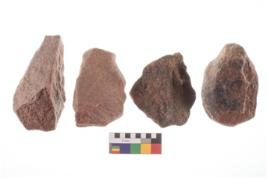 | Description / विवरण | Four worked utilised flakes. Many a times tapering and pointed at one end. |