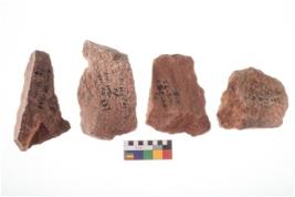 | Description / विवरण | Four worked utilised flakes. Many a times tapering and pointed at one end. |