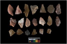 | Description / विवरण | There are n-20 of intact flake cores made up of chert. Some of them have bulge of percussion and some are flat flakes. |