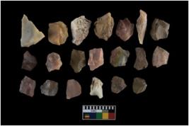 | Description / विवरण | There are n-20 of intact flake cores made up of chert. Some of them have bulge of percussion and some are flat flakes. |