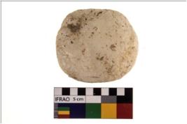 | Description / विवरण | A partially broken specimen of round shaped hammerstone with battered periphery along with the circumference. It is made up of quartz. |