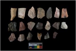 | Description / विवरण | There are n-20 of intact flake cores made up of chert. Some of them have bulge of percussion and some are flat flakes. |