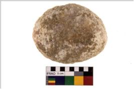 | Description / विवरण | A partially broken specimen of round shaped hammerstone with battered periphery along with the circumference. It is made up of quartz. |