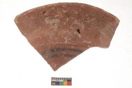 | Description / विवरण | Specimen of black on red ware with black decorative Wavy lines on rim geometric painting. |