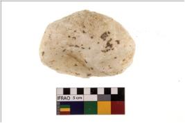 | Description / विवरण | A partially broken specimen of round shaped hammerstone with battered periphery along with the circumference. It is made up of quartz. |