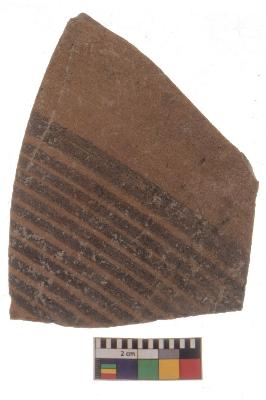 | Description / विवरण | Specimen of black on red ware with black decorative Parallel horizontal lines geometric painting. |