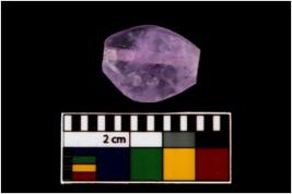 | Description / विवरण | A complete specimen of bi-truncated flattened hexagonal barrel shaped bead with lavender colour shade. It is having a tubular perforation. It is having hexagonal perimeter. It is made up of amethyst. |