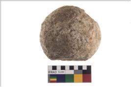 | Description / विवरण | A partially broken specimen of round shaped hammerstone with battered periphery along with the circumference. It is broken at one end. It is made up of quartzite with brownish colour shade. |