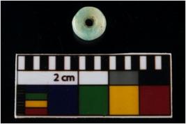 | Description / विवरण | A complete specimen of a short barrel disc shaped bead with a circular section. It is having a large and tubular perforation. It is greenish in colour. |