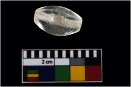 | Description / विवरण | A complete specimen of a hexagonal faceted bitruncated barrel shaped bead with a hexagonal section. It is having a tubular perforation which is drilled from both the ends and parallel in shape. It does not have any colour. |