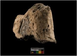 | Description / विवरण | Broken piece of terracotta figurine, only back portion is remaining, dull red colour surface, black core. Ill fired. Handmade, husk impression in core. |