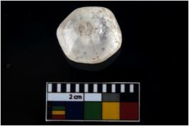 | Description / विवरण | A complete specimen of a hexagonal faceted bitruncated barrel shaped bead with a hexagonal section. It is having a tubular perforation which is drilled from both the ends and parallel in shape. It does not have any colour. |