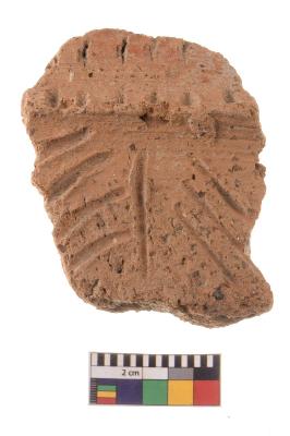 | Description / विवरण | Specimen of red ware with engraved decorative Criss cross lines geometric design. |