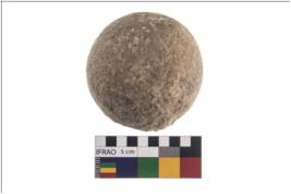 | Description / विवरण | A complete specimen of round shaped hammerstone with battered periphery along with the circumference. It is made up of quartzite. |
