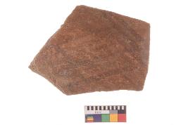 | Description / विवरण | Specimen of red ware with decorative geometric Net Pattern painting. |