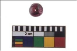 | Description / विवरण | A complete specimen of globular shaped garnet bead with a circular cross-section. It is having a tubular perforation. It is symmetrical round its axis. It is reddish brownish in colour. It is having a shiny, glossy and smooth surface. |