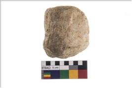 | Description / विवरण | A partially broken specimen of roughly round shaped and flattish hammerstone with battered periphery along with the circumference. It is flat at one end. It is made up of quartz. |