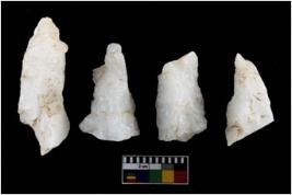 | Description / विवरण | There are n-4 of intact utilized flakes made up of Quartz. Some of them have bulge of percussion and some are flat flakes. |