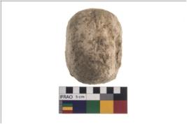| Description / विवरण | A partially broken specimen of roughly round shaped and flattish hammerstone with battered periphery along with the circumference. It is flat at one end. It is made up of quartz. |