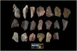 | Description / विवरण | There are n-20 of intact flake cores made up of chert. Some of them have bulge of percussion and some are flat flakes. |