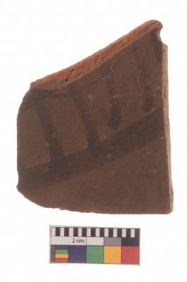 | Description / विवरण | Specimen of red ware with decorative red pigment. |