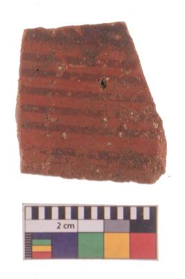 | Description / विवरण | Specimen of red ware with decorative geometric Linear Pattern painting. |
