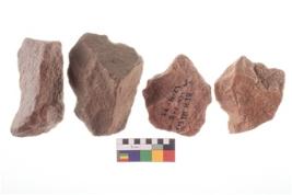 | Description / विवरण | Four worked utilised flakes. Many a times tapering and pointed at one end. |