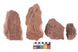| Description / विवरण | Four worked utilised flakes. Many a times tapering and pointed at one end. |