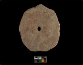 | Description / विवरण | The terracotta disc is slightly convex. It is rough around the egde. The disc has a perforation going through the middle. Red ware with a red slip. |