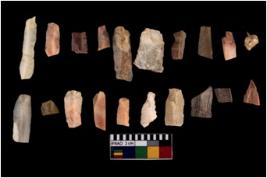| Description / विवरण | There 20 no. of blades of material chert. Some of them are points. All the blades are retouched and having sharp edges. |