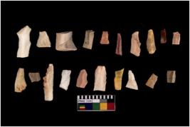 | Description / विवरण | There 20 no. of blades of material chert. Some of them are points. All the blades are retouched and having sharp edges. |