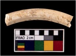 | Description / विवरण | Fragment of shell bangle, roughgly rounded cross section, white in colour. |