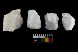 | Description / विवरण | There are n-4 of intact utilized flakes made up of Quartz. Some of them have bulge of percussion and some are flat flakes. |