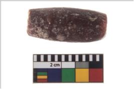 | Description / विवरण | A complete specimen of a long standard barrel shaped bead with a circular cross-section. It is reddish in colour. It is having a tubular perforation which is approximately parallel. It bores from one end only. It is having a matt and rough surface. It is symmetrical round its axis. |