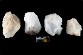 | Description / विवरण | There are n-4 of intact utilized flakes made up of Quartz. Some of them have bulge of percussion and some are flat flakes. |
