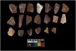 | Description / विवरण | There are n-20 of intact flake cores made up of chert. Some of them have bulge of percussion and some are flat flakes. |