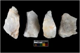 | Description / विवरण | There are n-4 of intact utilized flakes made up of Quartz. Some of them have bulge of percussion and some are flat flakes. |